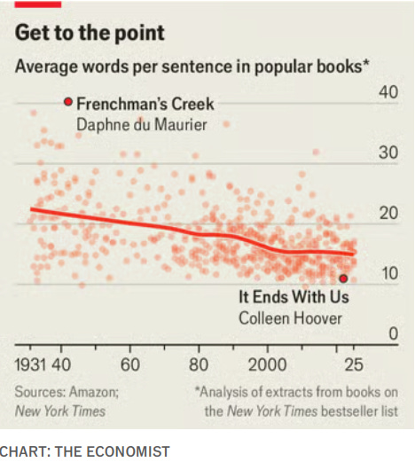 Desde antes de la IA, el número de palabras por enunciado en los bestsellers llamaban a la brevedad.